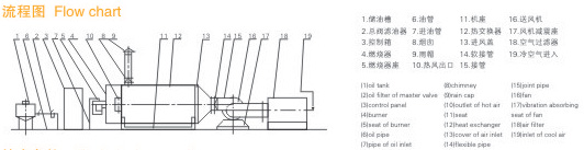 燃料通過燃燒器燃燒,產生高溫燃氣。并借助具有強化換熱措施的熱風爐將高溫燃氣的熱量傳導給被加熱的空氣,高溫燃氣經熱量散發后溫度降低至250℃后排到大氣中。需加熱的空氣通過選配的鼓風機強送入熱風爐,吸熱后溫度升至額定值從熱風出口處送出,當熱風溫度達到額定溫度上限時,燃燒器會自動停止燃燒或自動轉為小火焰燃燒,當熱風溫度降低到額定下限溫度時,燃燒器又會重新點燃運行或轉為大火燃燒,升溫的速度可以調節進風閥的開度來實現。