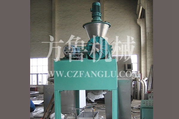 擠壓造粒的形式可以有對輥式和輪輾式兩種,對輥式擠壓是先壓成大塊,再破碎成顆粒,這樣裝置的能力大、顆粒強度高、能耗低,對輥擠壓在國外使用廣泛。輪輾式是在輥表面直接做成有穴槽型的形狀,一次擠成成型顆粒。產品強度較低有時需添加粘結劑。適合做有機肥和復合肥等顆粒肥料。